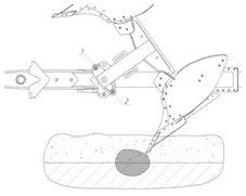 С помощью двух гидравлических цилиндров производится оборот плуга из правостороннего рабочего положения в левостороннее и обратно, а также для замыкания плуга в позицию «бабочка» при транспортировке.